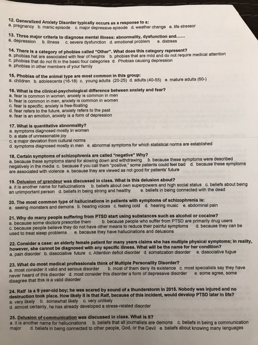 Solved Eneralized Anxiety Disorder Typically Occurs As A