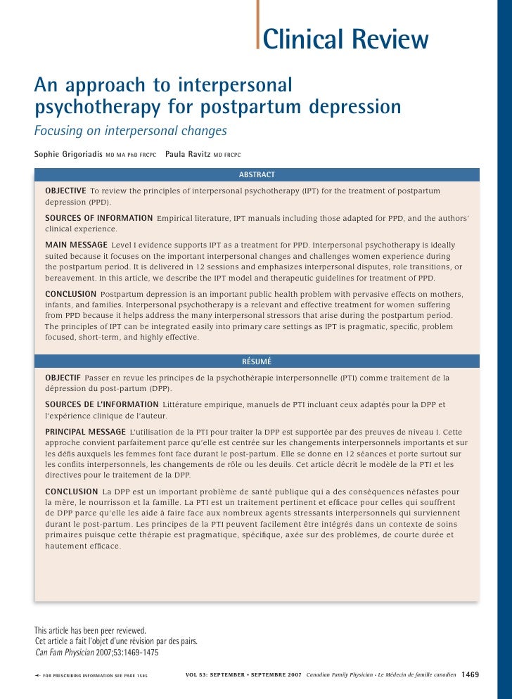 Interpersonal Psychotherapy For Postpartum Depression Grigoriadis