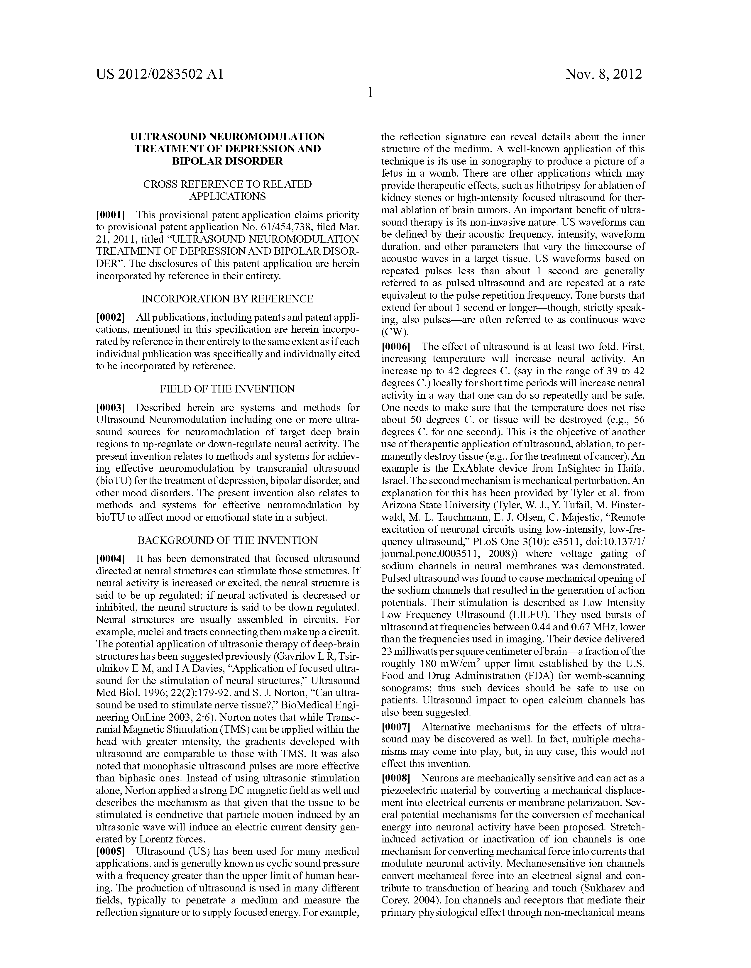 Us 2012 0283502 A1 Ultrasound Neuromodulation Treatment Of